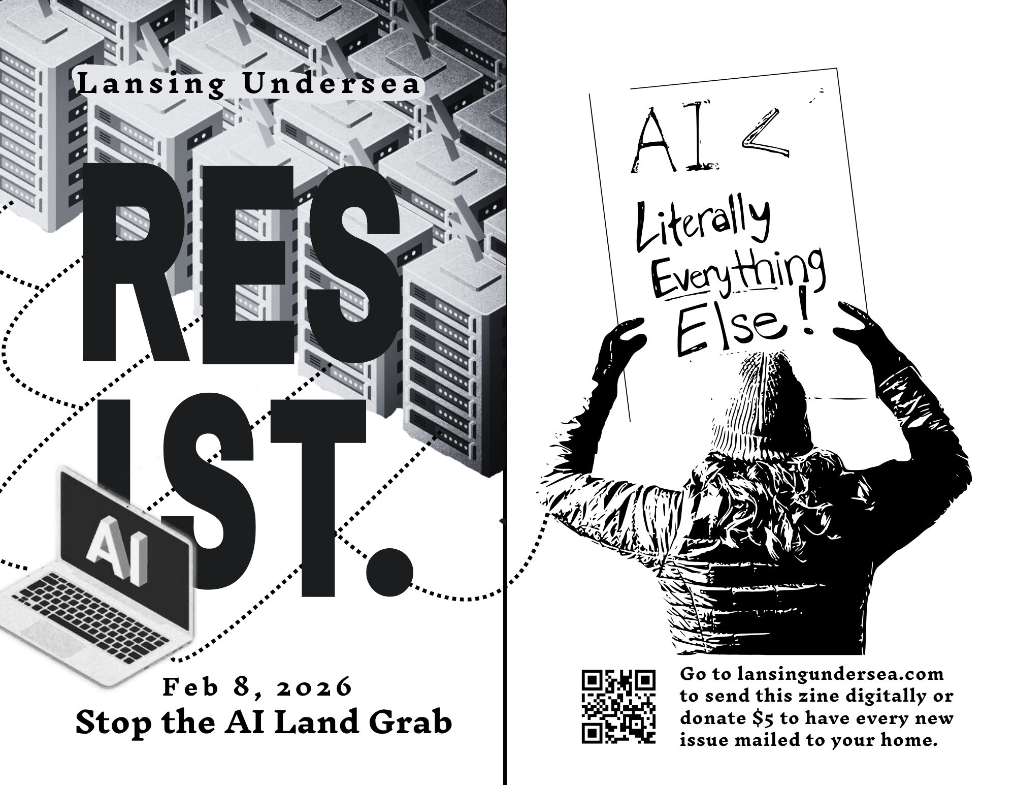 This zine was created to showcase community resources in the Lansing area to remind us all that we are not alone. It seems like every day that we’re seeing more and more scary things coming out of the White House. It is my belief that this is by design. The Trump Administration wants us to become disheartened. They want us to think Trump is so powerful that we shouldn’t even try. If you are subscribed to this zine, I think you’re the kind of person that can see that he’s full of shit.
